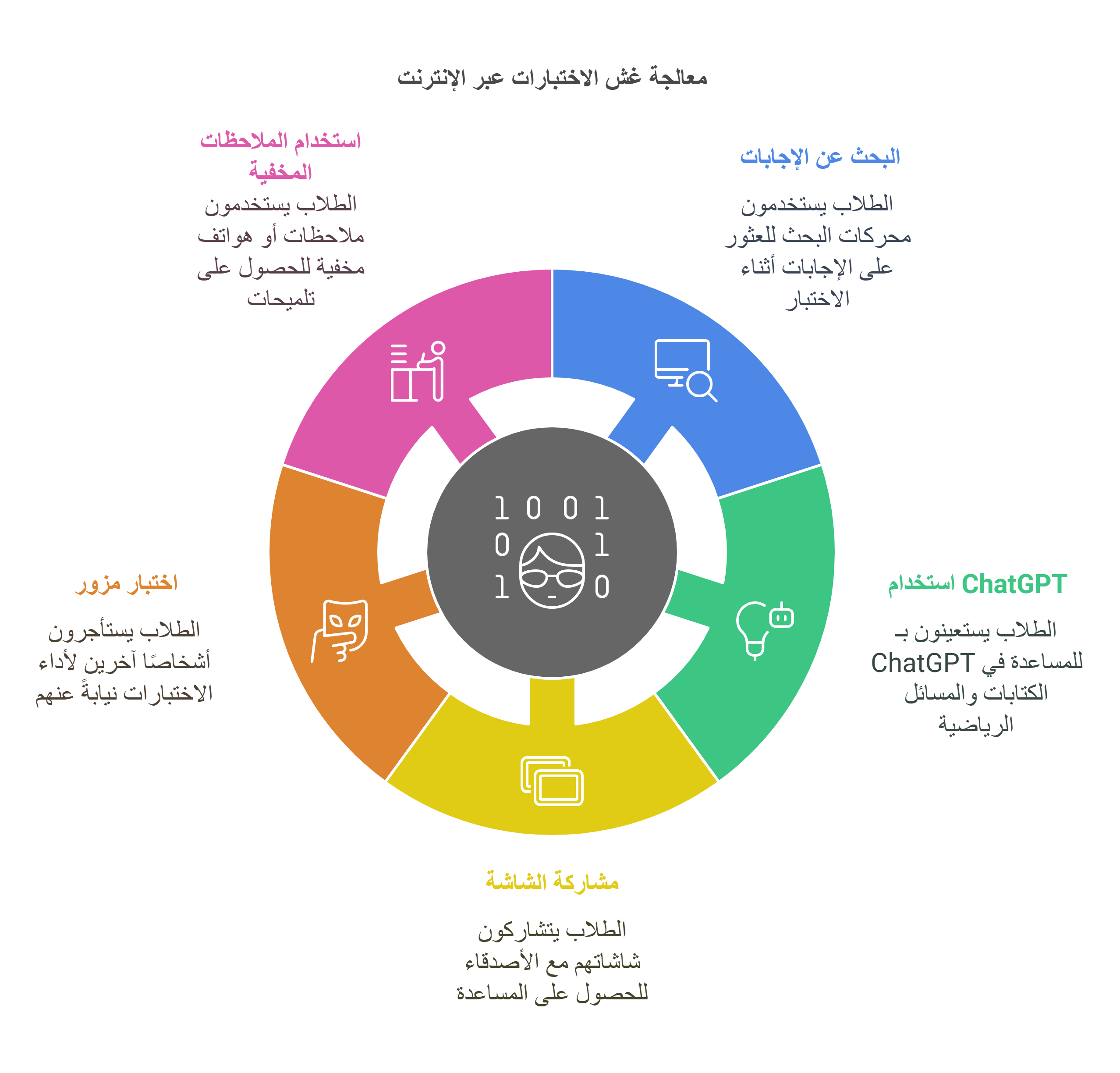 - لماذا تنجح؟: إذا لم يكن هناك نظام مراقبة صارم، يمكن للطلاب بسهولة الوصول إلى مصادر خارجية أثناء الامتحان.