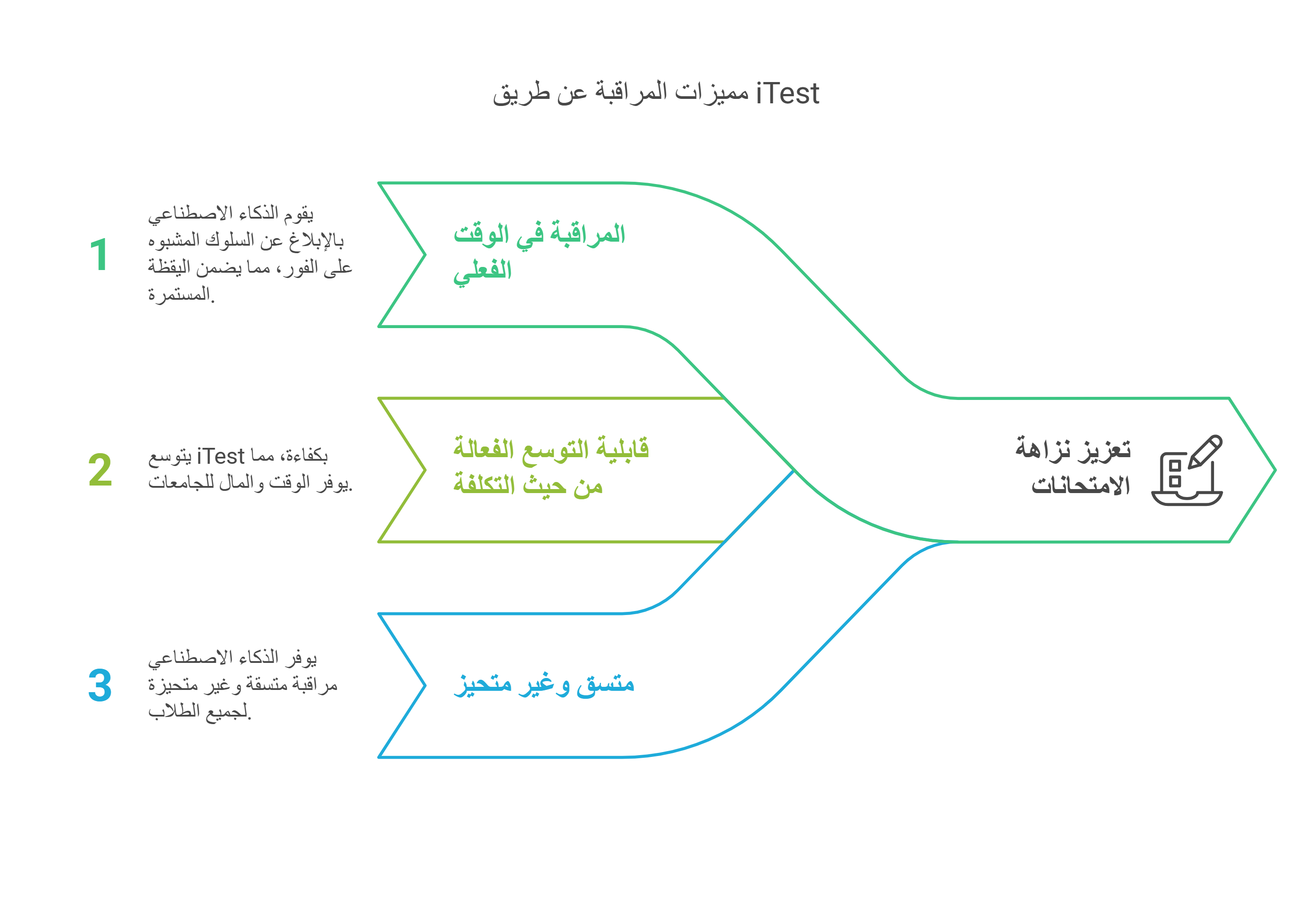المراقبة بالذكاء الاصطناعي ليست مجرد تحسين تقني — بل هي نقلة نوعية في حماية نزاهة الاختبارات. إليك كيف تقوم iTest بذلك: