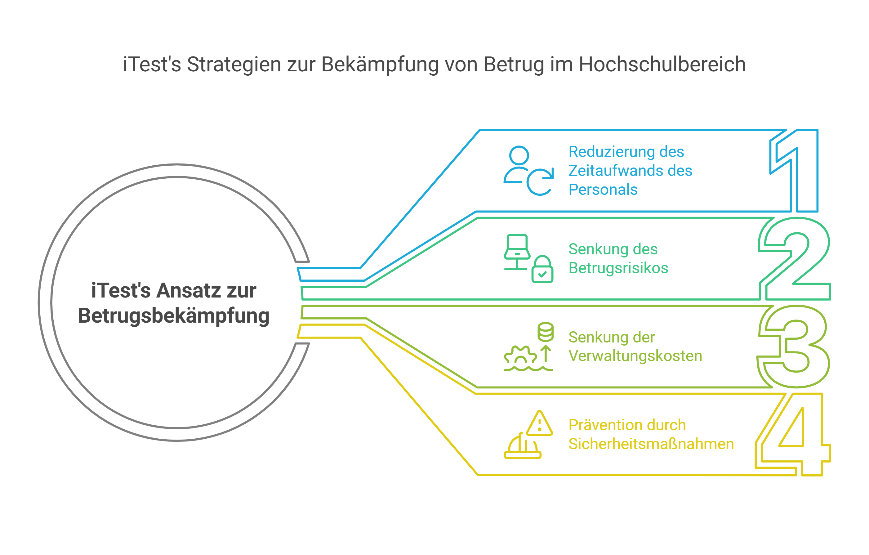 Täuschungsversuche im Hochschulbereich stellen die Hochschulen vor erhebliche finanzielle Herausforderungen, angefangen bei den Ermittlungskosten bis hin zur Schädigung des Rufs. iTest bietet eine umfassende Lösung für diese Herausforderungen, indem es den Zeitaufwand des Personals für Ermittlungen reduziert, das Betrugsrisiko senkt, die Verwaltungskosten verringert und Täuschungsversuche durch fortschrittliche Sicherheitsmaßnahmen verhindert. Durch den Einsatz innovativer Lösungen wie iTest können Universitäten die finanzielle Belastung durch Betrug verringern und gleichzeitig die akademische Integrität aufrechterhalten.